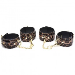 The cuffs that come with this hogtie are designed with a PU leather and a neoprene side, this allows you to choose the material you will feel on your skin by simply turn the cuffs around. The Neoprene side is colored and the PU leather side is black
