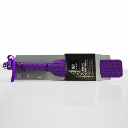 When variety is a must, the Saffron Studded Spanker is the perfect versatile tool. This spanker’s slim faux leather impact surface, part studded, part smooth, gives players the choice to dial down the intensity and only slap and tap with the smooth