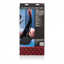 Be naughty and enjoy the spanking with this 32 inch Red and black stripe flogger. This flogger is made of vinyl fabric nickel free metal harware and wood.