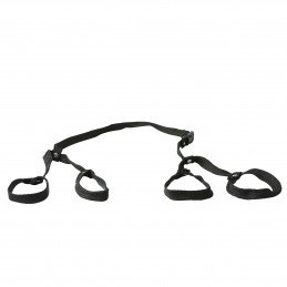 Spreader bar with adjustable Velcro ankle and wrist cuffs. Soft collapsible design for versatile use. Soft and plushy on one side with designer fabric on the other. Outer cuffs adjust up to 13-inches. Inner cuffs adjust up to 10-inches.