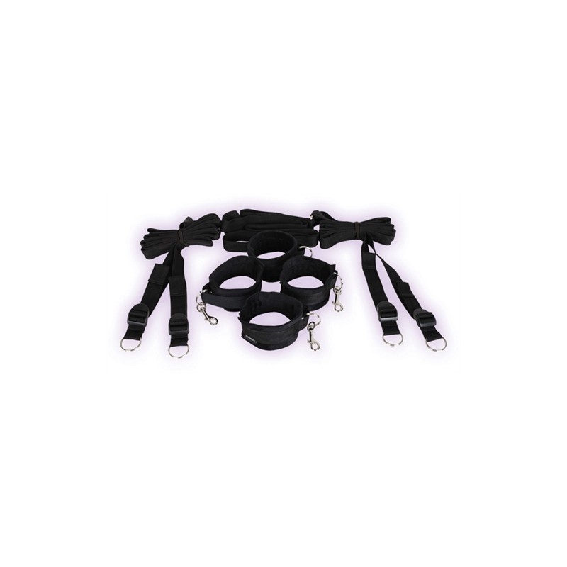 Take total control over your lovers every move with the Heavy-Duty Hogtie Kit. This easy-to-use hogtie kit includes adjustable neoprene wrist and ankle cuffs thick nylon straps a heavy-duty metal O-ring and deluxe metal buckles and clips. The comfort