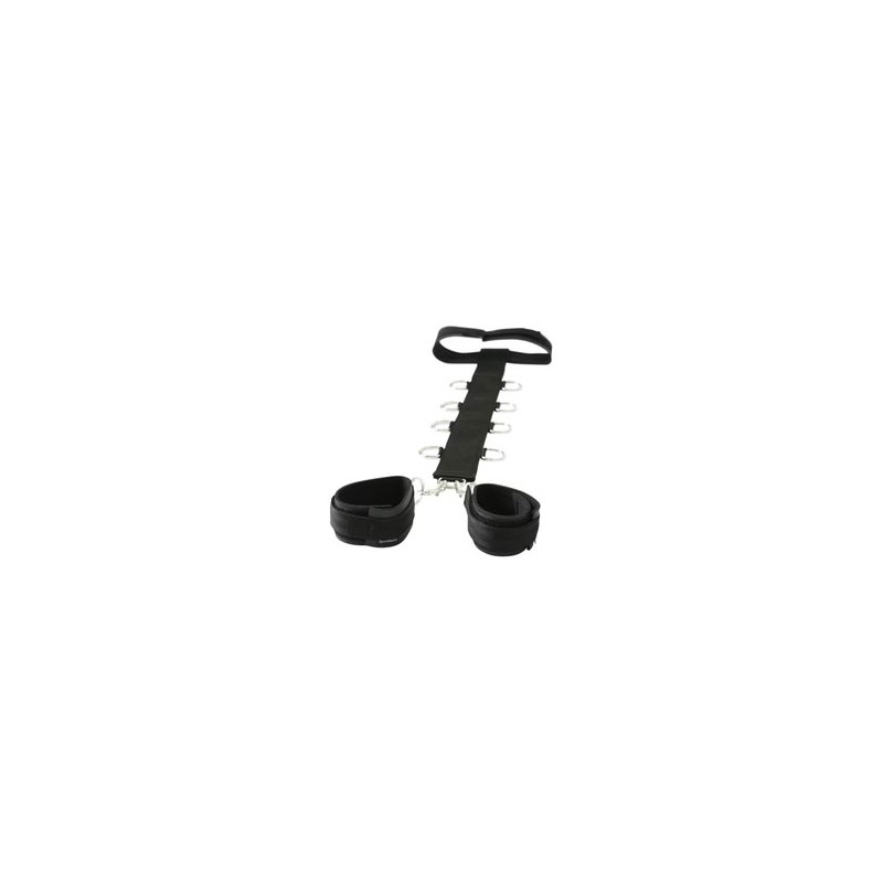 Keep your plaything in place and spread them wide with this sexy spreader bar. Made of durable steel, it has a wide range of adjustability. This bar has eyebolts securely attached to each end. Wrist and ankle cuffs can be attached to the bar as you
