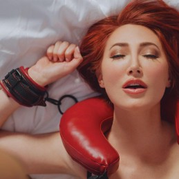 Try some sensory deprivation play with this Red Satin Blindfold. This luxurious double-layered satin blindfold is trimmed with Velboa and has a thin elastic strap for a comfortable fit.