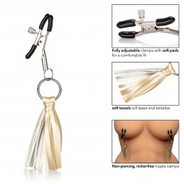 Experience the pinch of passion. Wireless vibrating nipple clamps . Each clamp glows red. Batteries included.