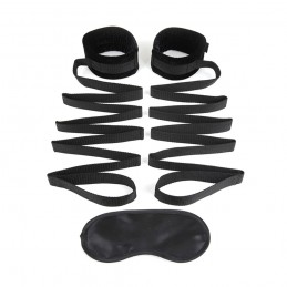 Turn your bed into the ultimate couples playpen. First tuck the bedspreader tether under the bed and position the cuffs close to each corner of the bed. Seduce your lover into putting on the satin blindfold mask. Lay your partner on the bed and affi