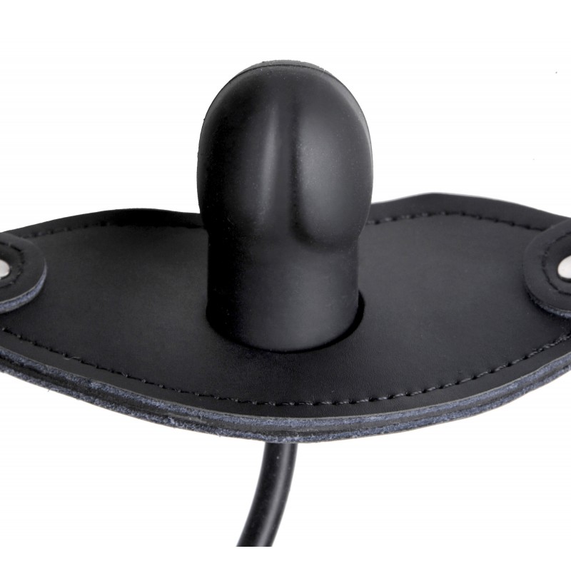 Leather strap plastic bit gag holds an edible jawbreaker. Made for advanced players.