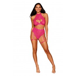 Showcase your curves in this sultry laced up lingerie set. Laced up halter bra with heart charm detail and hook and eye closure pairs up with an ultra high cheeki that meets a thong back for an irresistible back view. • Material: 88% polyamide, 1