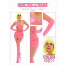 Risk Taker Rhinestone Bra Set Turn up the heat in the rhinestone fishnet lingerie set by Leg Avenue. This 5 PC sexy lingerie look features a bikini top, g-string, garter skirt, gloves, and matching stockings. A jaw-dropping outfit that's perfect fo