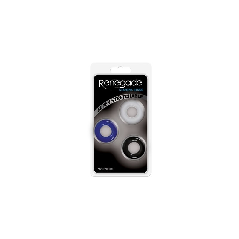 Durable cock rings are made of 100 percent skin-safe nitrile. Ring sizes are 1.25" (3.17 cm), 1.5" (3.81 cm), and a 2" (5.08 cm)