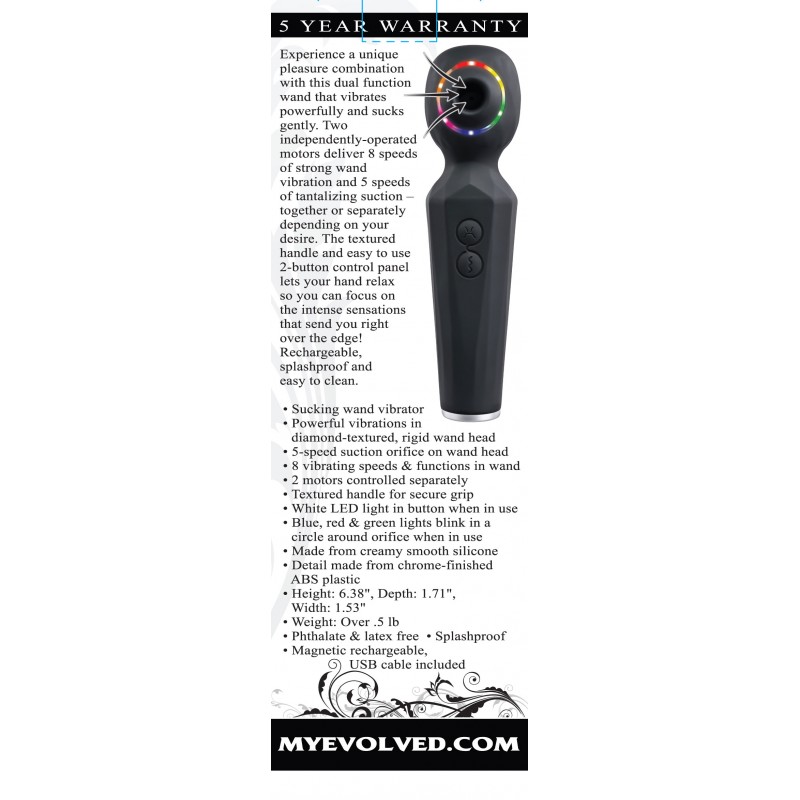 This powerful vibrator features a textured, ringed handle for comfortable navigation with a firm grip. Two independently controlled motors deliver multi-speed vibrations in both the bulbous crowned head and the ringed safety base, which is flexible