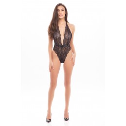Sensuality in full bloom, this teddy brings all the sexiness in one unique piece halter top, luxurious lace, straps caging and hugging curves, Deep plunge neckline, and diamonté charms to add blings of seduction. • Material: 88% polyamide, 12% span