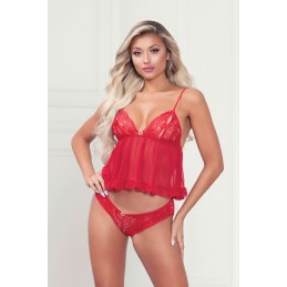A beyond breathtaking cage top with wired laced cups with embroidery trim. The strappy neckline with laced back make sperfect match to a curve hugging strappy panty. Diamante details. Boxed