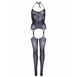 Cross over to the daring side with this opaque sheer black halter twist by Leg Avenue. This skin tight bodystocking brings out your most daring curves, with opaque wrapping around the thighs and front of body. • Package includes: Halter bodystoc