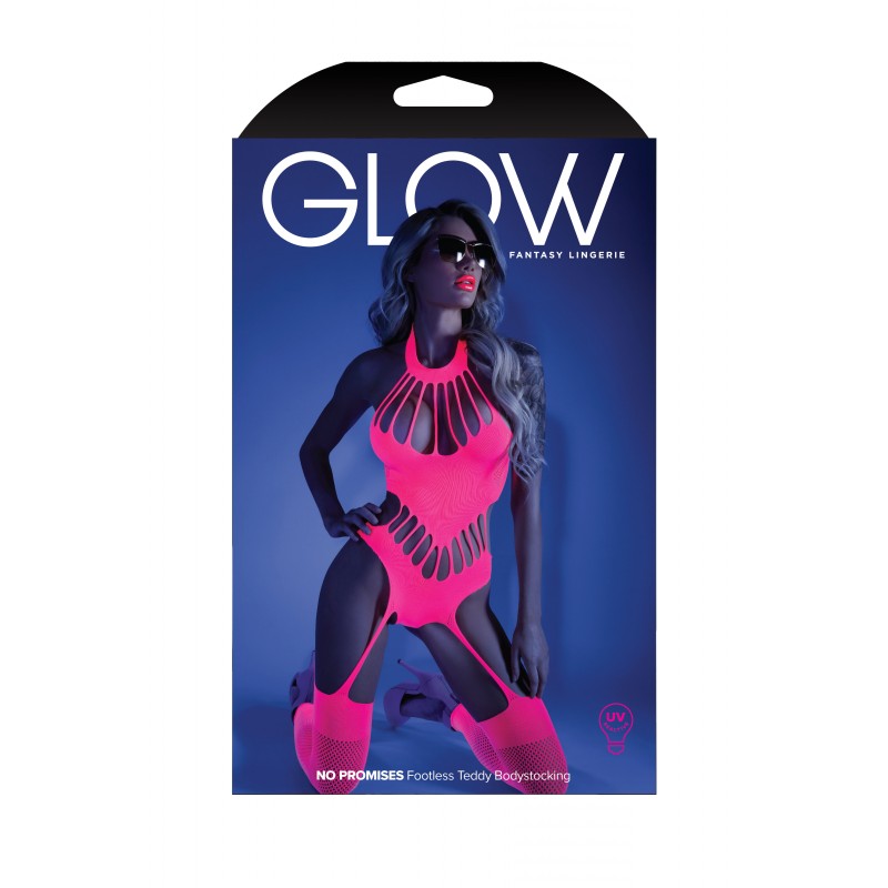 Moonbeam Crotchless Bodystocking • Stretch fishnet fabric • Lace pattern detail • Open crotch • Material: 90% nylon, 10% spandex • One Size fits US dress sizes 2-12 • Boxed item