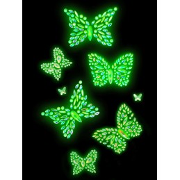 Iridescent Glow-in-the-Dark Cutout Cup Bra and Cage Panty with Adjustable Straps • Glow in the dark • Material: Main- 100% polyester, Mesh- 90% polyester, 10% spandex • Size M/L fits most US dress sizes 6-10 • Boxed item