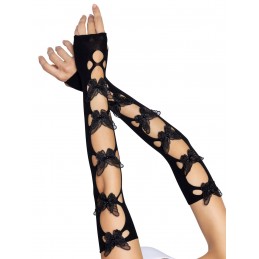 Black Rhinestone lace top fishnet stockings with attached garter belt • Material: 94% nylon, 6% spandex • One Size fits most 90-165 lbs • Packaging: Boxed item