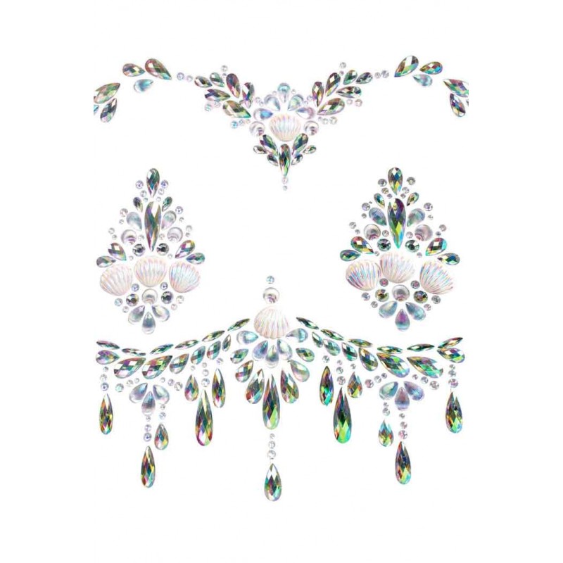 The Siren Adhesive Body Jewels Sticker is the perfect way to take your costume to the next level! Stick on adhesive body jewelry feature gorgeous high quality rhinestone and metal gems for all day spakle and shine. Great for halloween, themes parti