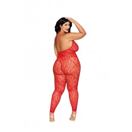 Lace crotchless boyshort with criss cross elastic strap back detail. Size 1X/2X. Polybag packaging.