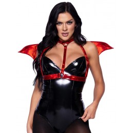 High neck gartered net teddy. • Material: 90% nylon, 10% spandex • One Size fits US dress sizes 2-12 • Boxed item