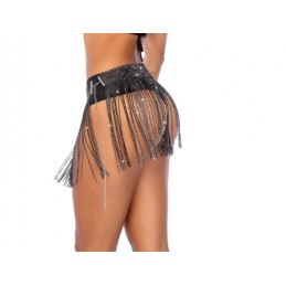Long Sleeved Rhinestone Fishnet Thong Back Bodysuit with Snap Crotch. • Material: 93% nylon, 7% spandex • One size fits most 90-165 lbs • Boxed item