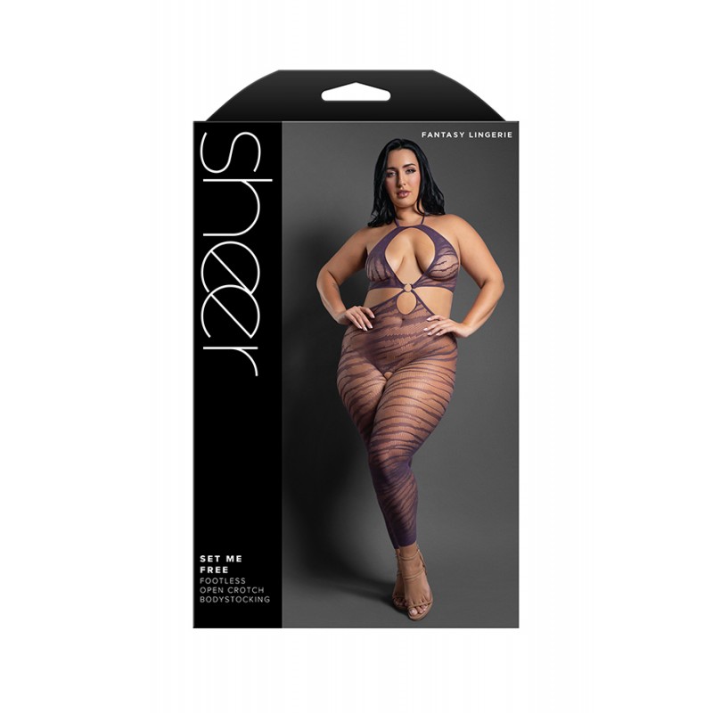 Halter teddy bodystocking with cut-out back in striped lace knit and fishnet Material: 95 Nylon, 5 Spandex Boxed item