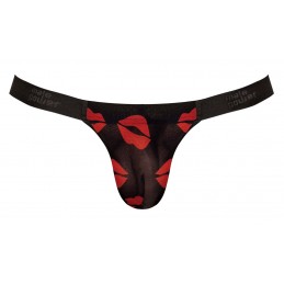 Novelty Maitre' D thong features tuxedo pouch with decorative faux buttons and bow and thong back with attached tuxedo flaps.