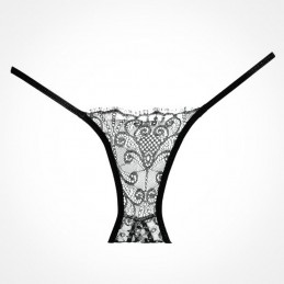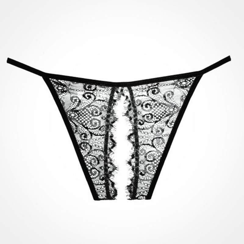 Sheer thigh high stockings with lace top. G-string sold separately. Boxed