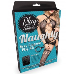 Soft stretch lace waist for comfort and fit. Attached lace garter straps and sheer thigh high stockings with lace top. Sexy suspender garter belt pantyhose. *Thong not included. Boxed.