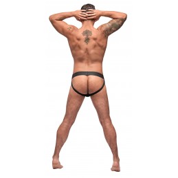 Lame crotchless boyshort with hip cutouts. Boxed packaging,