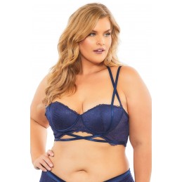 Two Piece Bra Set. Black Lace Bra with Strappy detail, hook and eye back, adjustable straps, gold hardware, and G-String. • Material: 90% nylon, 10% elastane • Queen size fits most dress size 14-20 • Boxed item