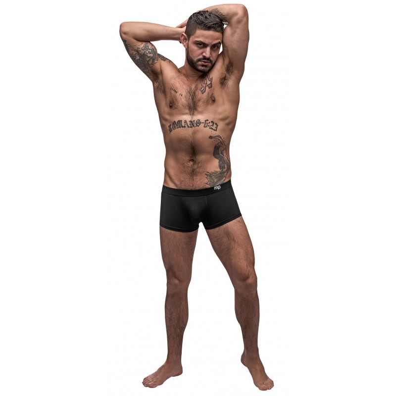 Lame crotchless boyshort with hip cutouts. Boxed packaging,