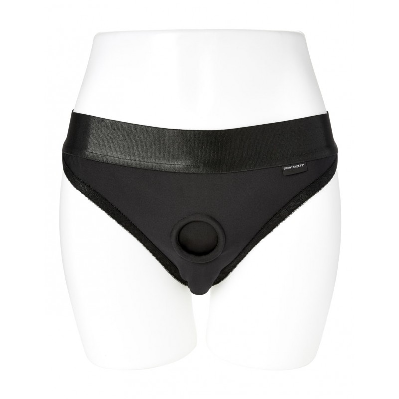 Crotchless strappy back lace panty. Imported Materials: 90% Nylon, 10% Spandex Boxed item