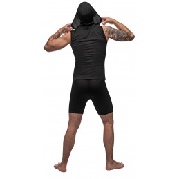 Sleeveless suspended bodystocking with side cut outs. 92% Nylon 8% Spandex. (Thong not included). Box Packaging.