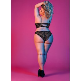 Mesh underwire bustier with removable shoulder straps and g-string panty with hook clasp closures • Material: 95% Polyester, 5% Spandex • Size L/XL fits most US dress sizes 10-14 • Boxed item