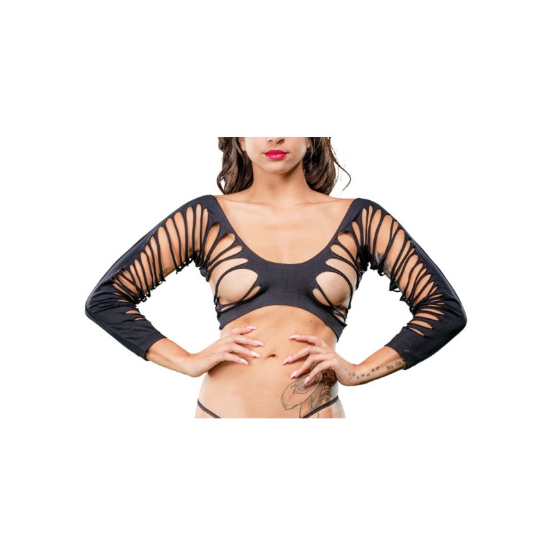 Get your Cleopatra goin' in this perfect queen of denial long sleeve biker short body stocking with geometric mesh motif. Does that make it geo-mesh-ric? Yes, yes it does. *G-string shown on model not included Boxed
