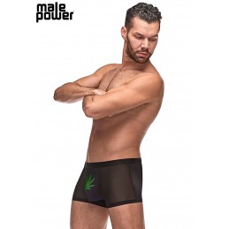 Boyshort panty with elastic detail Galloon lace with scalloped edges Crotchless with lace up back detail Hanging