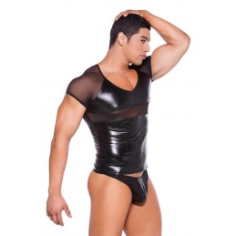 Sassy and seductive this flirty wet look bustier gives you curves that just wont quit. One size runs from small to large range. G-string included.
