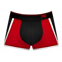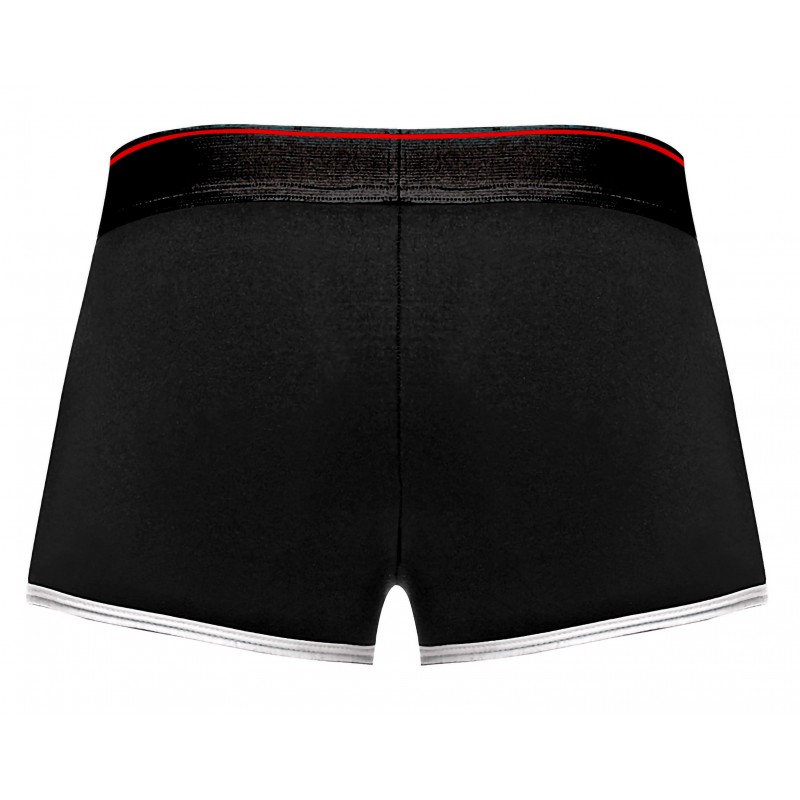 Lo rise enhancer short features matching trim with enhanced pouch and plush branded waistband.