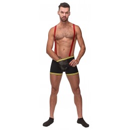The ultimate skimpiest schoolgirl costume. Strappy plaid bodysuit suit collar and tie accessory. • 78% Polyester & 22% Elastan • Boxed Item *Stockings not included