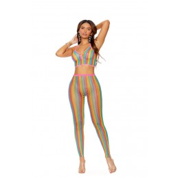 Cami fishnet bodystocking with side strappy detail. (Thong not included) Boxed packaging.