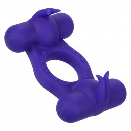 • Stretchy and comfortable vibrating couples enhancer with flickering dual teasers • 12 intense functions of vibration, pulsation and escalation • Dual independent motors • Enhances stimulation for you and your partner • Luxurious body-safe Silicone • State-of-the-art memory chip resumes on last function used • Security travel lock feature – hold for 3 seconds to turn on or off • USB rechargeable – dual charging cord included • Complete charge in 1.5 hours (each motor • Runs for 55 minutes on high speed and 80 minutes of low speed (each motor) • 4.25” x 2.75”/10.75 cm x 7 cm (enhancer), 2.75” x 1”/7 cm x 2.5 cm (each stimulator), 1.25”/3.25 cm (diameter - ring)
