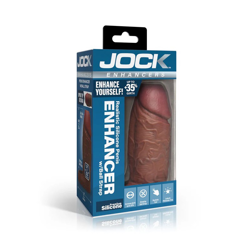 Introducing the Penis Enhancer with Ball Strap! This extra-wide and short sleeve is designed to deliver an intense stretch to your partner's vulva or anus. Realistic veins and an anatomically accurate shape add authenticity, while the smooth interior guarantees a comfortable fit. The included ball strap keeps the enhancer securely in place, allowing you to focus on pleasure. The open-tip design grants your shaft more freedom and makes fluid release easy. Made from top-grade, body-safe silicone, it’s best used with water-based or oil-based lubricants for maximum enjoyment.