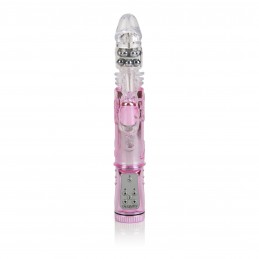 Wireless vibrating cockring with rabbit clitoral stimulator. 2 wireless variable speed bullets. Fully bendable vibrating shaft.