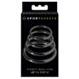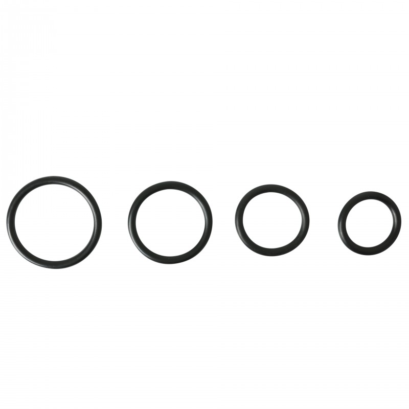 Set of 3 Silicone Cock Rings in graduated sizes for longer lasting erection support. Inner ring diameters: Small: 38.1 mm. (3.81 cm.) Medium: 44.45 mm. (4.45 cm.) Large: 57.15 mm. (5.72 cm.) Free Collector Print inside box. A portion of the pro