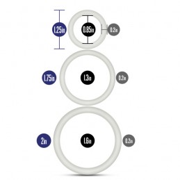 Optimize your experience with these silicone cock rings. The Optimale Thick C-Ring Set offers enhanced size and girth with three rings in 32mm, 37mm, and 42mm diameters. These rings are ultra stretchable for easy use around the shaft or testicles mai