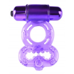 The Screaming O Two-O is a disposable vibrating cockring with two stimulating vibrating bullets, one on top and one on the bottom. The super stretchy ring slides over his shaft with the top vibrator positioned to touch her clitoris with every stroke