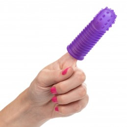 Soft textured and stretchy penis extender adds girth plus 1inch nubby stimulator adds extra stimulation support ring for a secure fit.