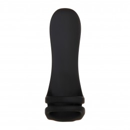 Vibrating cockring. This cockring features a forked tongue sleeve with a powerful mini waterproof bullet. Batteries included. MEASUREMENTS: • Length: 2" (5.08 cm) • Width: 3" (7.62 cm)