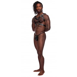 Buckle Up Harness Top • Soft flexible material • O-Ring and stud hardware • Adjustable buckle closures • Pasties and panty not included • Material: 65% PU, 35% PVC • One Size fits US dress sizes 2-12 • Boxed item