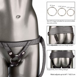 The Supreme Harness is built for comfort and rigorous play. It provides sexy support and is easily adjustable up to 69-inches with pull-to-tighten straps open crotch and rear and a snap front for swapping out attachments. Made of smooth black neopren